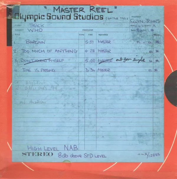 | CD5-4 | The Who: Too Much Of Anything (Original 1971 Vocal) | 4:34 min | |