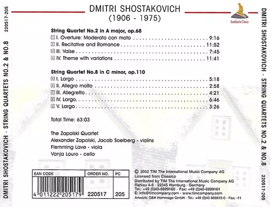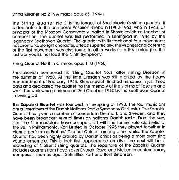 | Artista | Dmitri Shostakovich | The Zapolski Quartet |