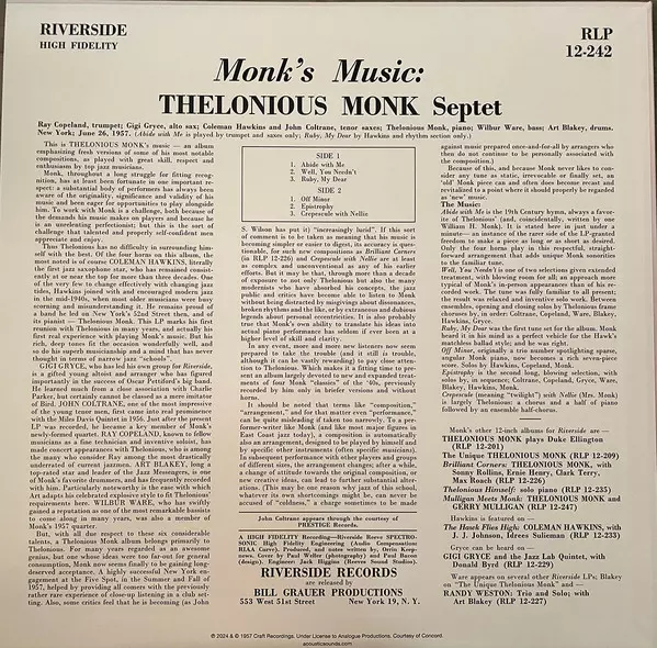 | Editorial | Analogue Productions | Riverside Records |
