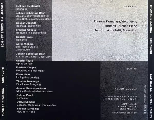 | Artista | Thomas Demenga | Teodoro Anzellotti | Thomas Larcher |