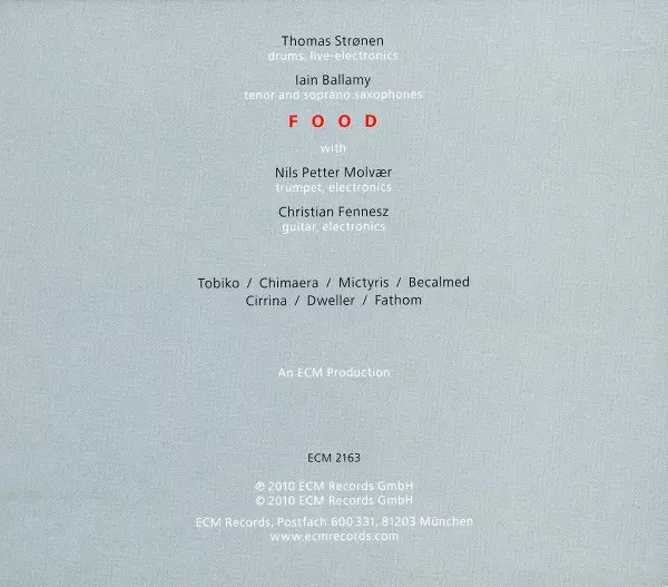 | Artista | Thomas Strønen | Iain Ballamy | Food |