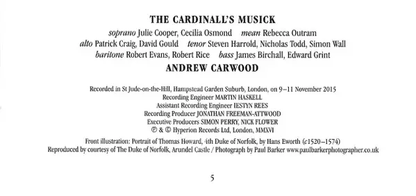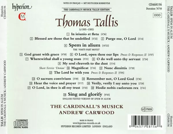 | Artista | Thomas Tallis | The Cardinall's Musick | Andrew Carwood |
