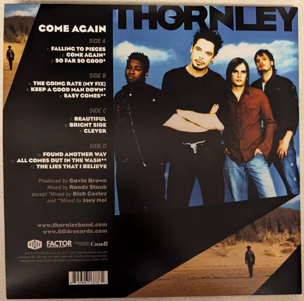 Thornley: Come Again CLR | LTD versión en vinilo 2LP en en color 45 RPM de edición limitada edición. Esta edición en concreto se lanzó en Canadá en la editorial 604 Records el día 17. mayo 2024. Álbum abarca todos los géneros Rock y Alternative rock.