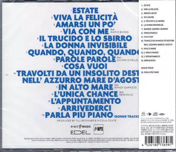 Till Brönner: Italia = イタリア versión en CD en estándar edición. Esta edición en concreto se lanzó en Japón en la editorial MOCLOUD RECORDS en colaboración con Ultra-Vybe, Inc. el día 8. octubre 2025. Álbum abarca todos los géneros Pop, Jazz, Música fácil de escuchar y Smooth Jazz.