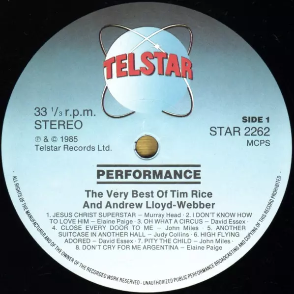| Título | Performance (The Very Best Of Tim Rice & Andrew Lloyd Webber) |