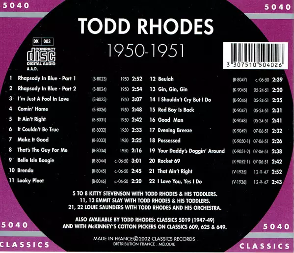 | Artista | Todd Rhodes |
