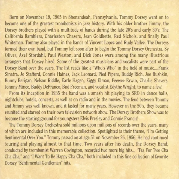 | Artista | Tommy Dorsey And His Orchestra |