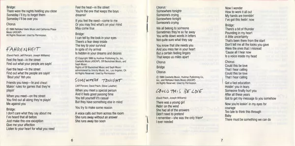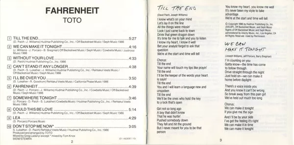 Fahrenheit" was the first album on which Joseph Williams sang. With the hit "I'll Be Over You" and guest appearances by Glen Frey, Michael McDonald and Miles Davis (!), the band emphasized that they were still one of the absolute top American AOR bands of the late 80s. Bill Payne and George Massenburg of Little Feat contributed to The Seventh On...