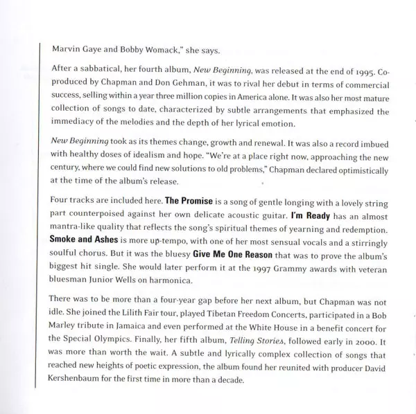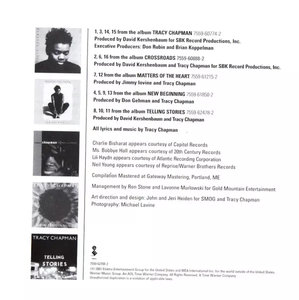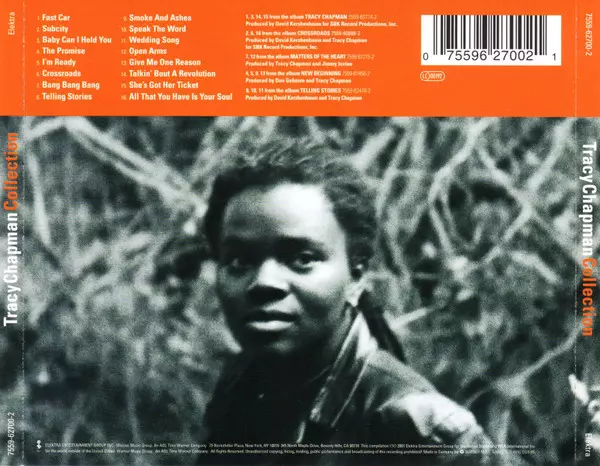 Tracy Chapman: Collection versión en CD en estándar edición. Esta edición en concreto se lanzó en Europa en la editorial Elektra. Álbum abarca todos los géneros Rock, Pop, Folk, World, & Country, Blues, Funk / Soul, Vocal, Balad, Música acústica, Folk y Blues-Rock.