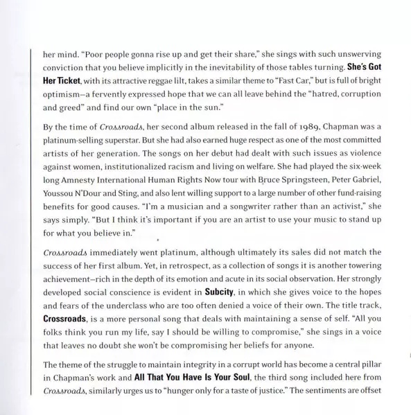 Acoustic Guitar [Rhythm], Electric Guitar [Rhythm], Percussion, Vocals Tracy Chapman | Bass Larry Klein | Electric Guitar, Organ [Hammond] Jack Holder | Percussion, Drums Denny Fongheiser