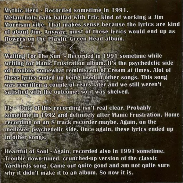 Trouble is an American doom metal band that was formed in 1979 in Aurora, Illinois. They are widely regarded as one of the pioneers of the genre, blending the heavy riffs and slow tempos of early Black Sabbath with a more melodic and progressive sound. The band's classic lineup con...