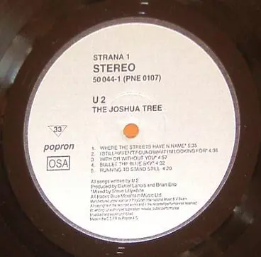 U2: The Joshua Tree (POPRON) versión en vinilo LP en estándar edición. Esta edición en concreto se lanzó en Checoslovaquia en la editorial Popron del año 1991.