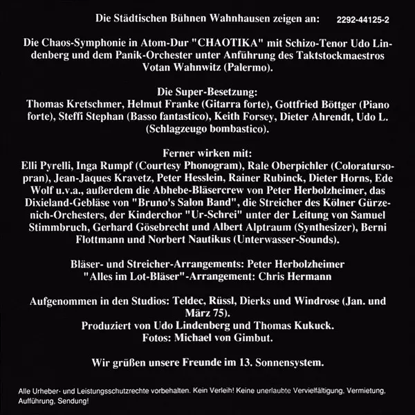 | Artista | Udo Lindenberg Und Das Panikorchester |