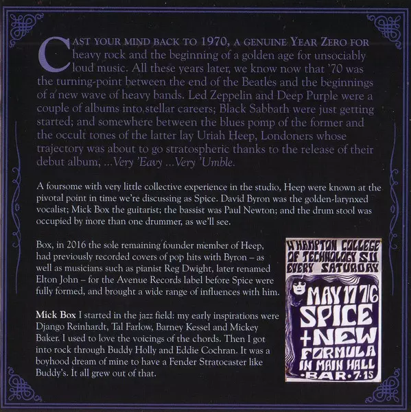 Deluxe reedice legendárního debutového alba Uriah Heep "Very 'Eavy, Very 'Umble" z roku 1970. Dvojité CD v digipacku obsahuje původní album v remasterované verzi Andyho Pearce (Black Sabbath, Lou Reed) a také dosud nevydané alternativní verze a bonusové skladby na CD2. Booklet obsahuje rozsáhlé poznámky k desce a raritní fotografie kapely....
