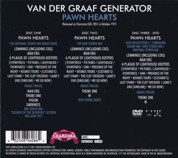 Třídisková edice klasického alba Van der Graaf Generator z roku 1971, které je považováno za jedno ze zásadních alb progresivní éry. Remasterováno z původních master pásků první generace s novým stereo mixem a 5.1 prostorovým zvukem od Stephena W. Taylera a dalšími bonusovými skladbami ze sessions alba.