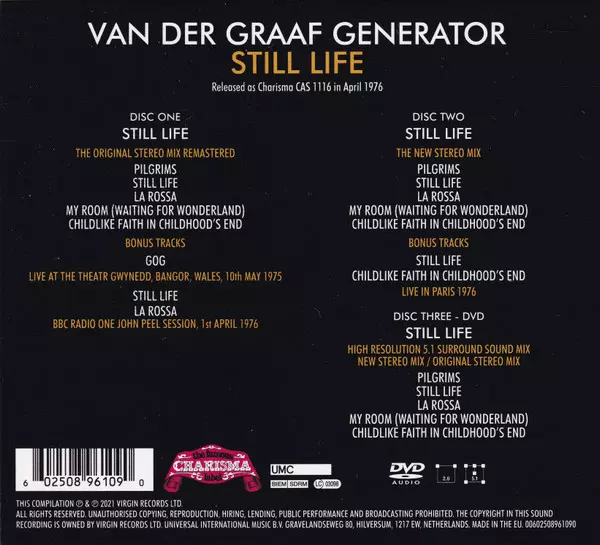Šesté album v novém hávu "Still Life", šesté album skupiny Van Der Graaf Generator, oslavilo v roce 2021 své 45. narozeniny. Při této příležitosti vydává britská progresivní rocková kapela v roce 2021 speciální reedici: třídiskovou edici klasického alba se dvěma CD a DVD-Audio, remasterovanou z původních master pásů první generace, s úžasným nov...