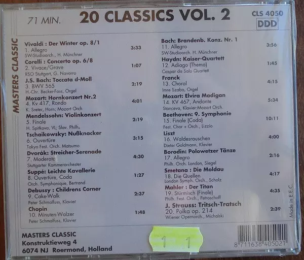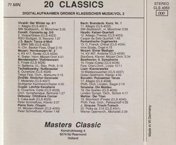 | Título | 20 Classics - Digitalaufnahmen Großer Klassischer Musik - Vol. 2 |