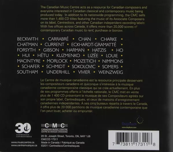 | Título | Centrediscs 30 Years - A Canadian Music Sampler |