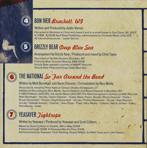 | Mixed By Joel Hamburger | Orchestrated By Padma Newsome | Piano Aaron Dessner | Recorded By Aaron Dessner, Justin Vernon | Viola, Organ Padma Newsome | Vocals Justin Vernon | Written-By Aaron Dessner, Justin Vernon | |||