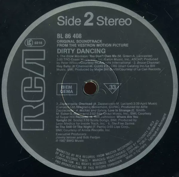 | Título | Dirty Dancing (Original Soundtrack From The Vestron Motion Picture) |