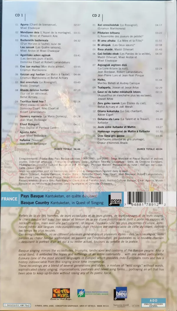 Various: France: Pays Basque - Kantuketan = Basque Country - Kantuketan versión en 2CD en estándar edición. Esta edición en concreto se lanzó en Francia en la editorial Ocora el día 1. julio 2018.