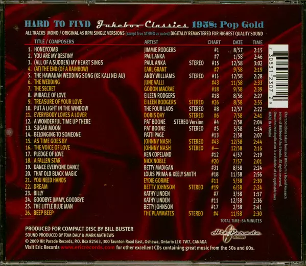 | Título | Hard To Find Jukebox Classics 1958: Pop Gold |