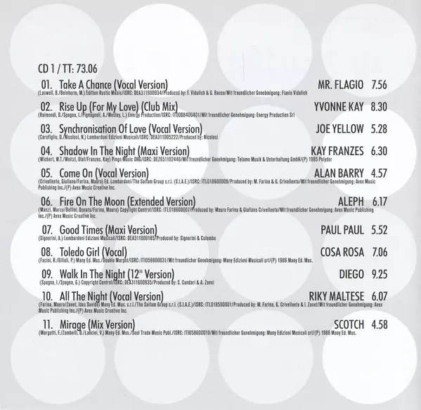 | 1-01 | Mr. Flagio: Take A Chance (Vocal Version) | 7:56 min | |