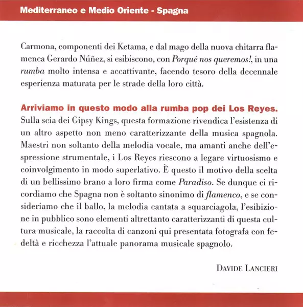 | Título | Mediterraneo E Medio Oriente - Spagna - Dal Flamenco Alle Nuove Contaminazioni: Gerardo Núñez, Remedios Amaya, Los Reyes |