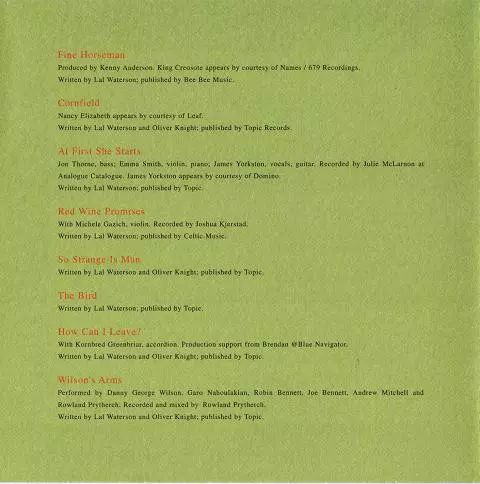 | Engineer Iwan Morgan | Producer Iwan Morgan, Richard James (2) | Written-By Lal Waterson, Oliver Knight | |||