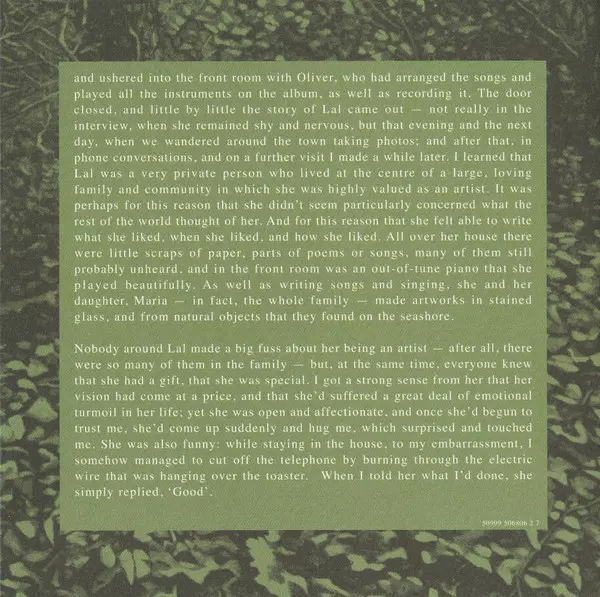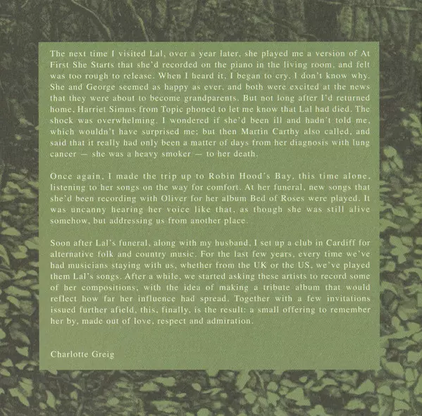 | Arranged By, Other [Processed By] Melanie Wilson (2) | Producer Lindsey Woolsey | Vocals Elle Osborne | Written-By Lal Waterson | |||