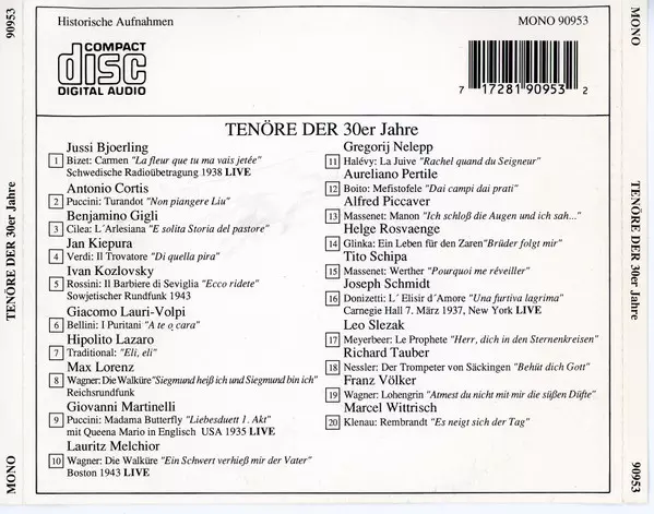 | Título | Operntheater (Berühmte Tenöre Der 30er Jahre) |