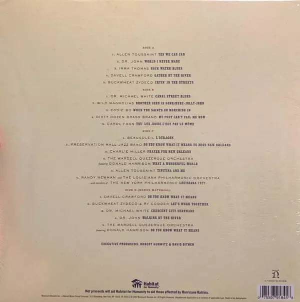 This album is a compilation of music recorded by various artists in New Orleans in 2005 in support of Hurricane Katrina victims. The album features a blend of traditional New Orleans music and contemporary styles, with contributions from well-known artists such as Dr. John, Allen Toussaint, and Irma Thomas.