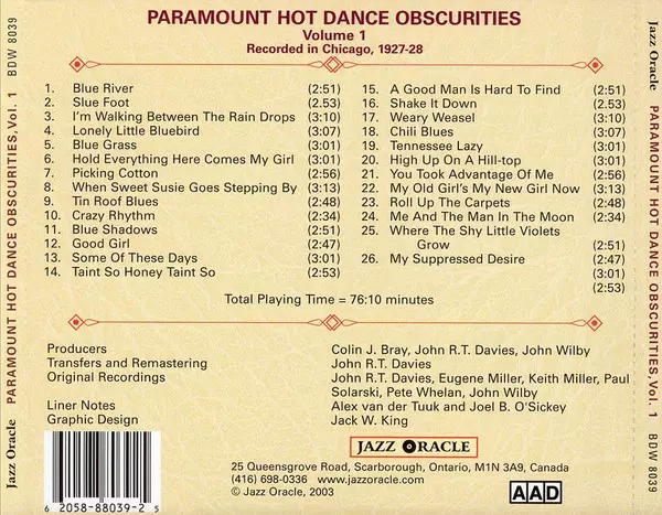 | Título | Paramount Hot Dance Obscurities, Volume 1 (Recorded In New York 1927–1928) |