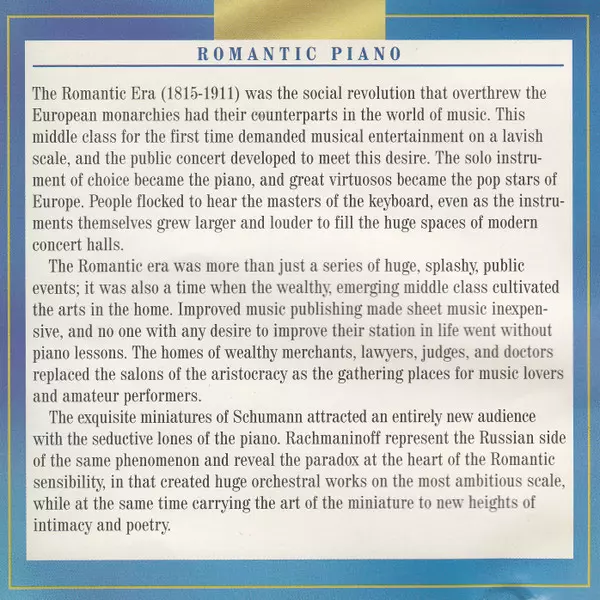| Título | Romantic Piano Concertos |
