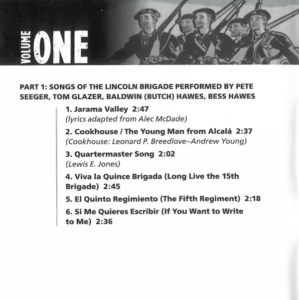 | 1 | Pete Seeger, Bess Hawes, Tom Glazer, Baldwin Hawes: Jarama Valley | 2:47 min | |