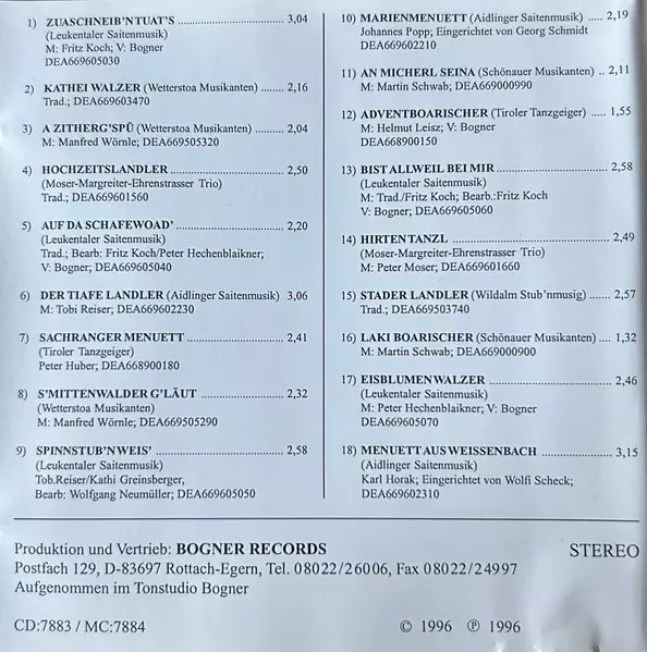 | 1 | Leukentaler Saitenmusik: Zuaschneib´n Tuat´s | 3:04 min | |