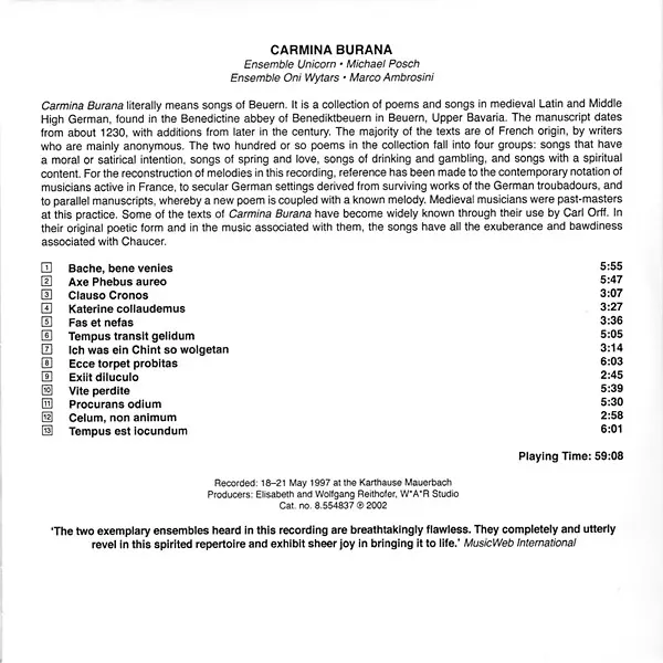 Carmina Burana (Medieval Poems And Songs) | |||