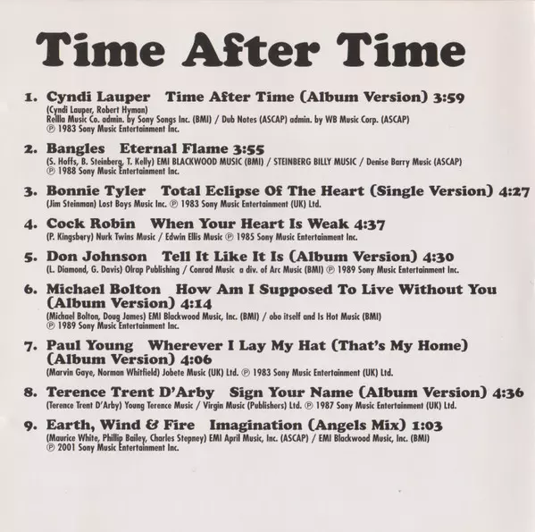 | Título | Time After Time (80's Love Songs) |