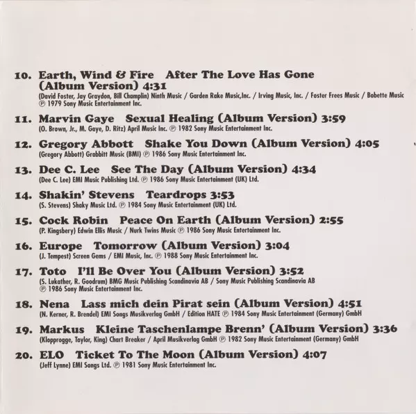 | 20 | Electric Light Orchestra: Ticket To The Moon | 4:07 min |