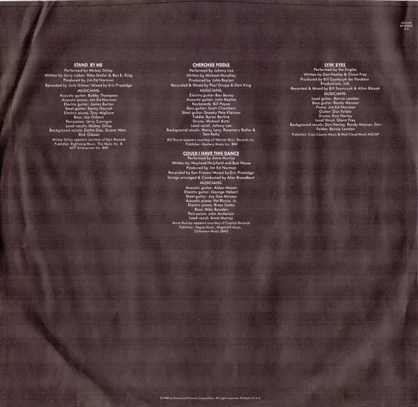 | Acoustic Guitar John Boylan | Backing Vocals Marcy Levy, Rosemary Butler, Tom Kelly | Bass Guitar Scott Chambers | Drums Mike Botts | Electric Guitar Ben Benay, Larry Carlton | Keyboards Bill Payne | Lead Vocals Johnny Lee (3) | Producer John Boylan | Recorded By, Mixed By Deni King, Paul Grupp | Steel Guitar Sneaky Pete Kleinow | Written-By Bob Morrison, Patti Ryan, Wanda Mallette | |||