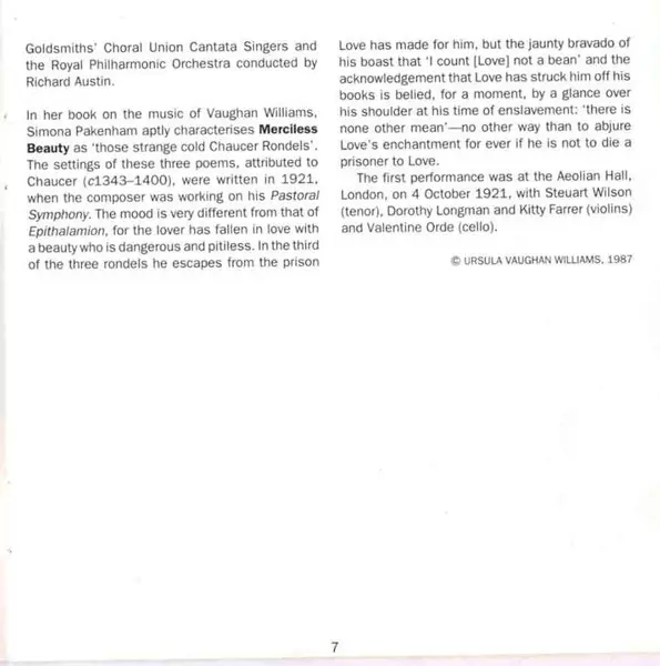 | Philip Langridge, Members Of The Endellion String Quartet: Merciless Beauty (Three Rondels For Voice And String Trio) | 6:28 min | |
