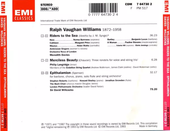 | Artista | Ralph Vaughan Williams | Philip Langridge | David Willcocks | Meredith Davies |