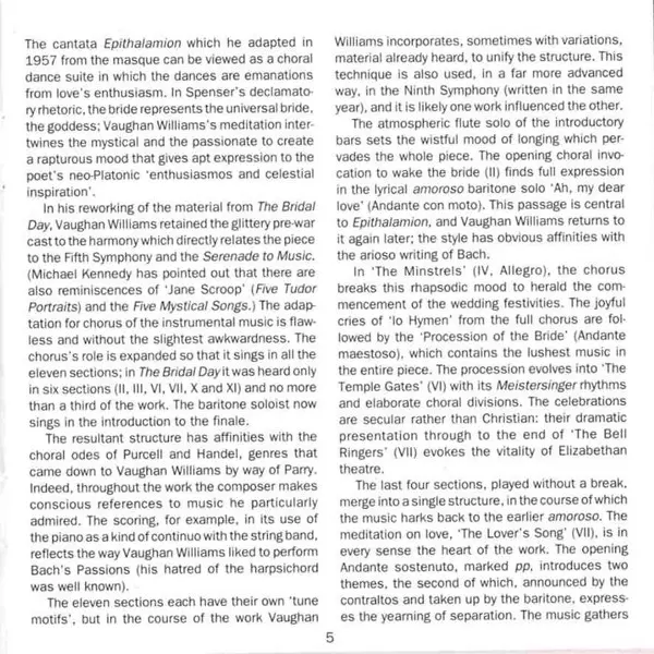 | Baritone Vocals Stephen Roberts (2) | Chorus Master [The Bach Choir] Douglas Janes | Conductor David Willcocks | Flute Jonathan Snowden | Piano Howard Shelley | Producer David Groves | Words By Edmund Spenser | ||