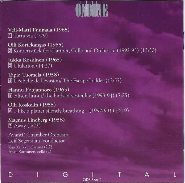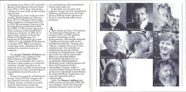 Avanti! is a Finnish chamber orchestra, founded in 1983 by conductors Esa-Pekka Salonen, Olli Pohjola and Jukka-Pekka Saraste. The size of the orchestra varies between a string quartet and a symphony orchestra depending on the situation. Avanti! Orchestra plays music of all periods...