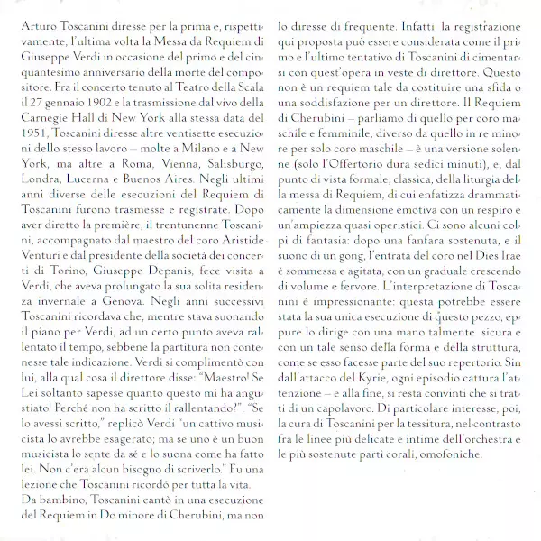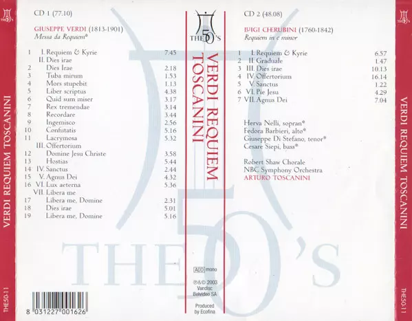 | Artista | Giuseppe Verdi | Luigi Cherubini | Arturo Toscanini |