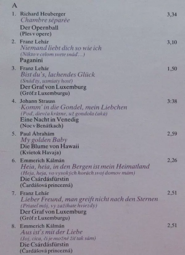 | A6 | Emmerich Kálmán: Heia, Heia, In Den Bergen Ist Mein Heimatland | 2:26 min | |