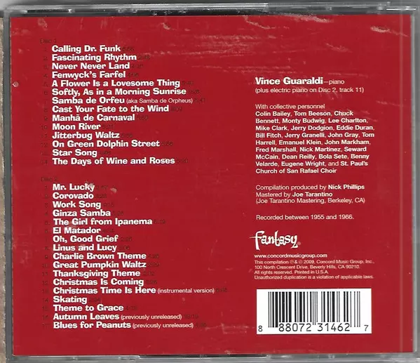 Vince Guaraldi: The Definitive Vince Guaraldi versión en 2CD en estándar edición. Esta edición en concreto se lanzó en EE.UU. en la editorial Fantasy el día 6. octubre 2009. Álbum abarca todos los géneros Escenario y pantalla, Jazz, Soundtrack y CoolJazz.