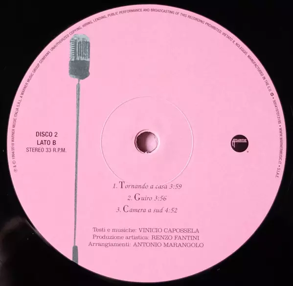 Vinicio Capossela: Camera A Sud versión en vinilo 2LP en remasterizado edición. Esta edición en concreto se lanzó en Europa en la editorial Atlantic el día 2. noviembre 2018. Álbum abarca todos los géneros Pop, Folk, World, & Country y Folk. 180g Remastered Gatefold Vinyl.