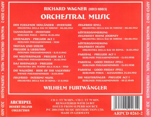 | Título | Richard Wagner, Orchestral Music, Wilhelm Furtwängler, 1954/2004 |