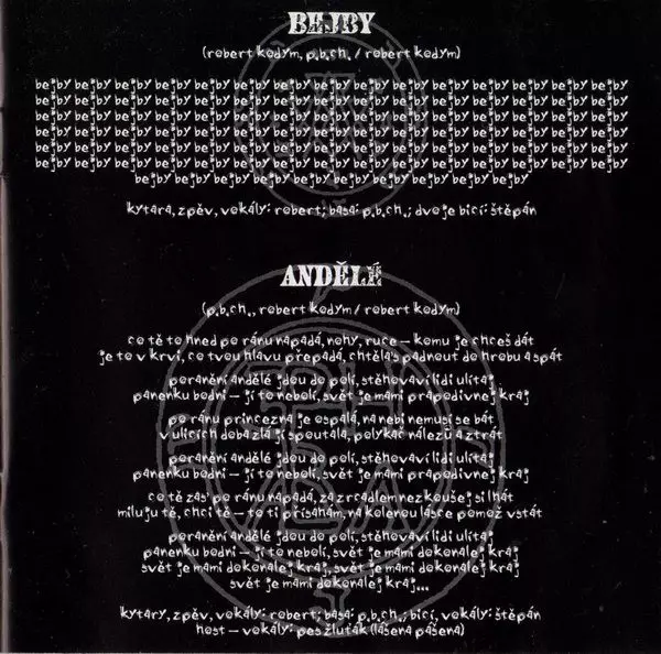 Arranged By [Vokální Aranžmá] Štěpán Smetáček | Bass Guitar P.B.Ch. | Drums, Percussion, Backing Vocals, Flute, Other [Prdelka Lenky Kelemenové] Štěpán Smetáček | Guitar, Backing Vocals, Lead Vocals Robert Kodym | Music By P.B.Ch. | Music By, Lyrics By Robert Kodym